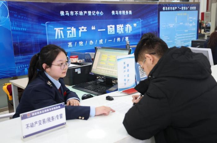 在山西临汾,侯马市税务部门开设不动产“一窗联办”窗口,便利纳税人办理相关业务。(冯勋功 李梦莹/摄)