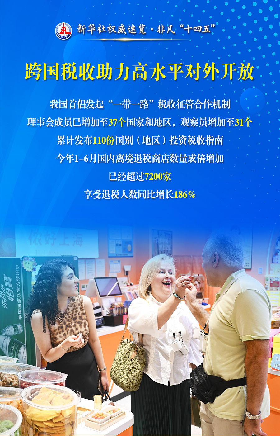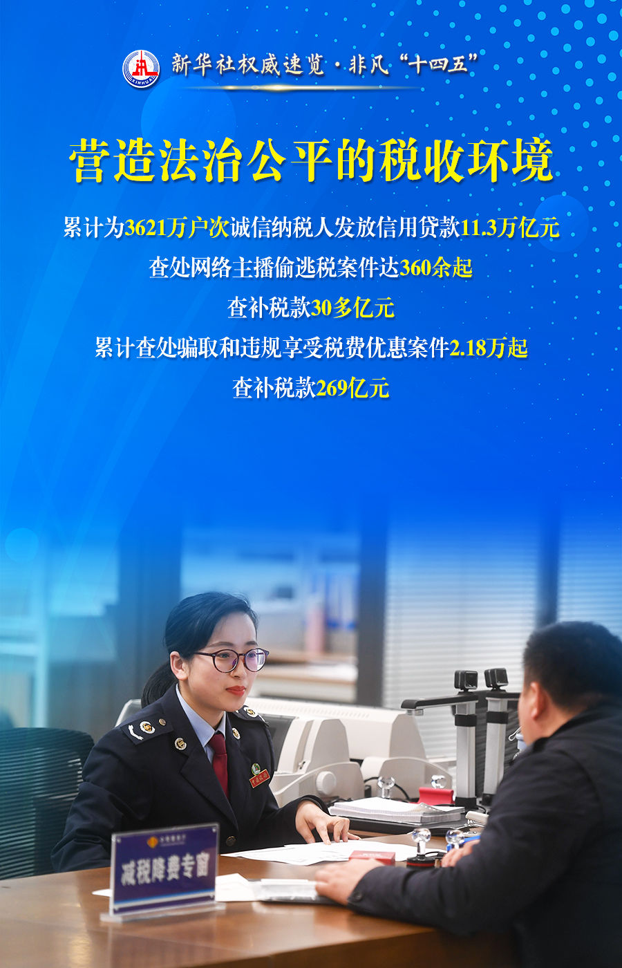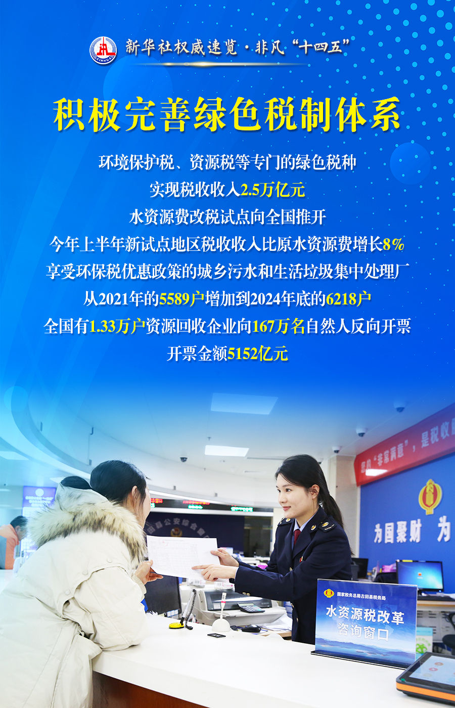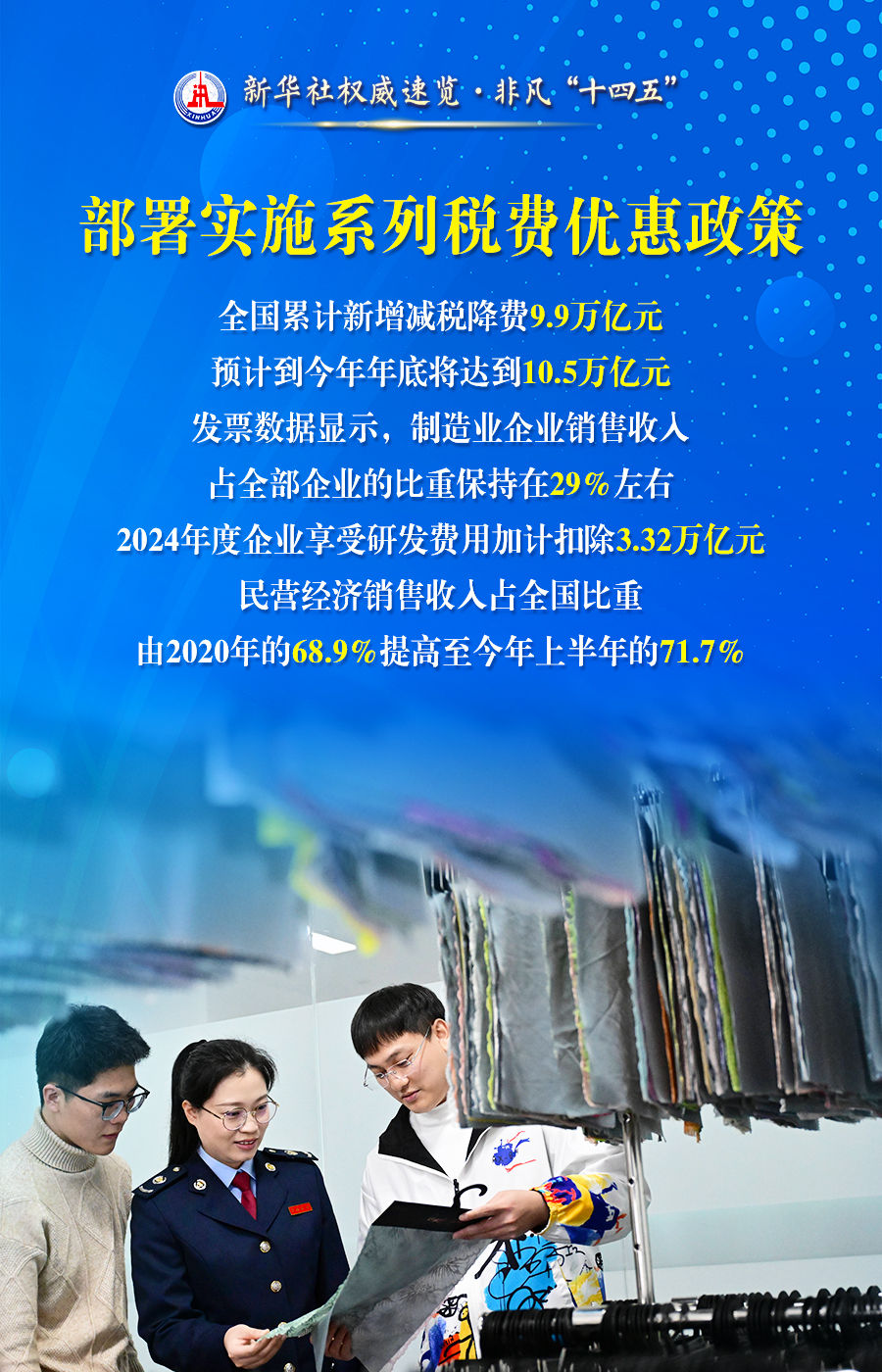 首页 新闻动态 媒体视点 媒体视点 索引号 主题分类 发文机关 标题 发文字号 发布时间 废止日期 税收服务高质量发展,税务部门这么干! 发布时间:2025-07-29 来源:新华社 字号:[ 大 ][ 中 ][ 小 ] 打印本页 下载 超过1亿人享受专项附加扣除、全国累计新增减税降费今年将达到10.5万亿元、90%的高频办税缴费业务可以在3分钟内办结......28日举行的“高质量完成‘十四五’规划”新闻发布会上,国家税务总局介绍“十四五”时期税收服务高质量发展的情况。通过这组海报,一起来看。 扫一扫在手机打开当前页